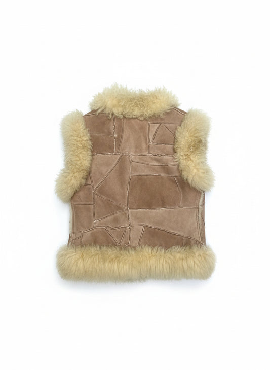 [USED] Faux Shearling Patchwork Vest, Shaggy Trim