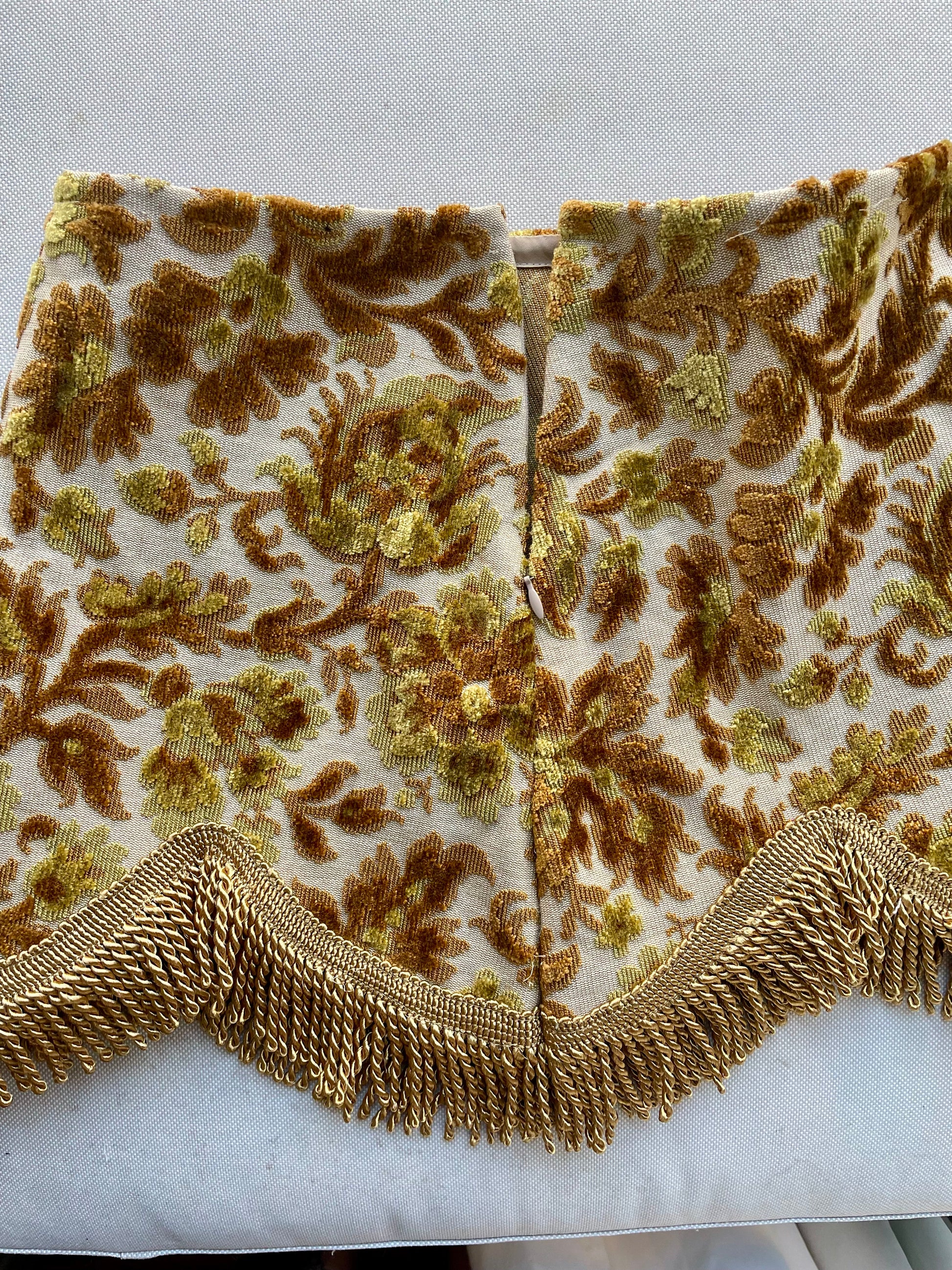 This mini skirt is crafted from recycled jacquard fabric. It features a fringe hem and a hidden side zipper for a sleek finish.