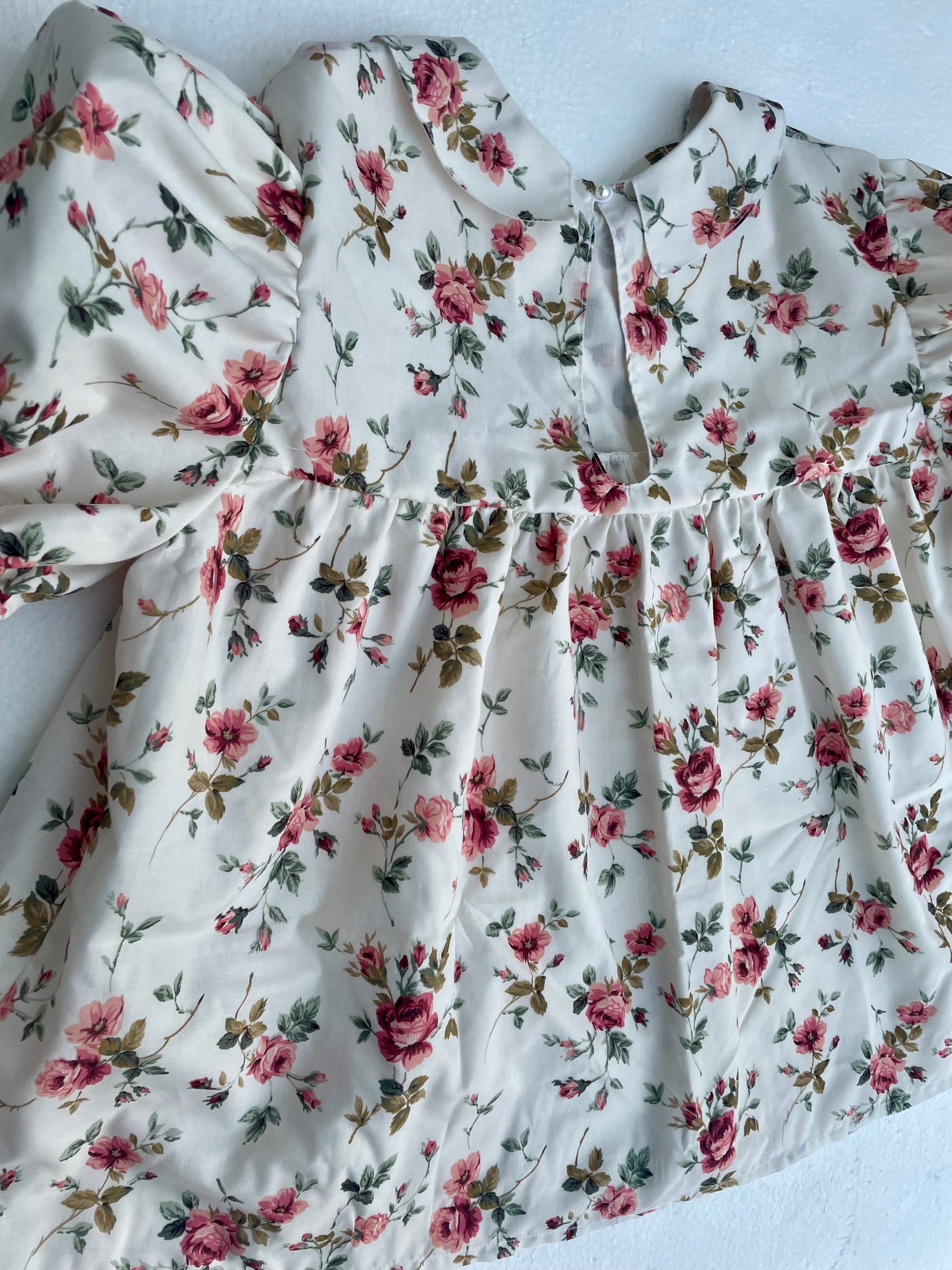 Handcrafted with care, it features softly gathered puff sleeves, a relaxed baby doll silhouette, and a button opening at the back.