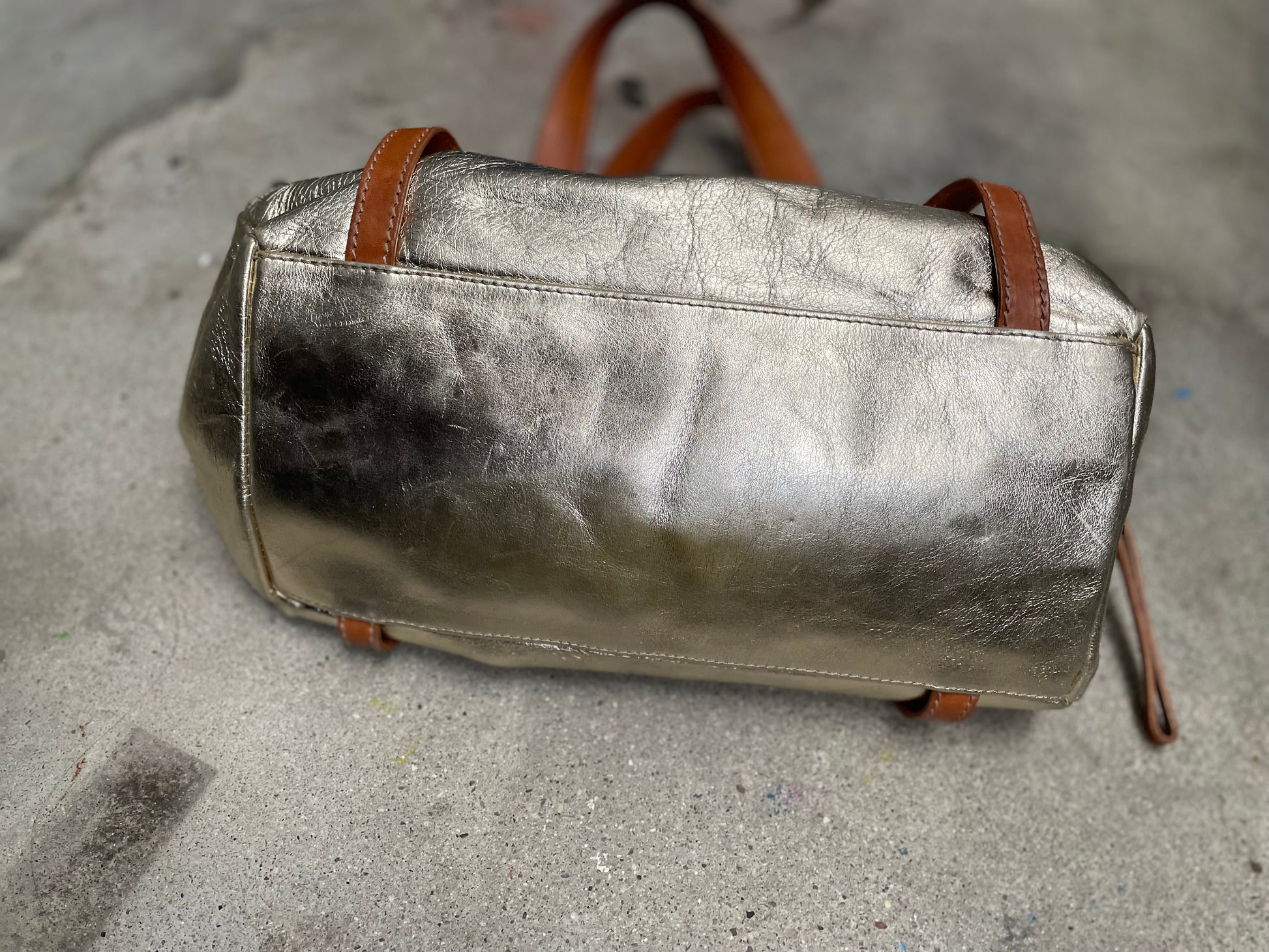 こちらのバッグは、収納力のある広い内側スペースと複数のポケットを備えており、日常使いにとても実用的です。ゴールドレザーが個性と魅力を引き立て、コーディネートの主役となる存在感を放ちます。アクセサリー感覚で取り入れることができ、夏はデニムに白Tシャツ、ゴールドのサンダルと合わせるのがおすすめです。冬はデニムにベーシックなトップスとレザーブーツを合わせ、ファーをプラスすることで、よりグラマラスな印象になります。