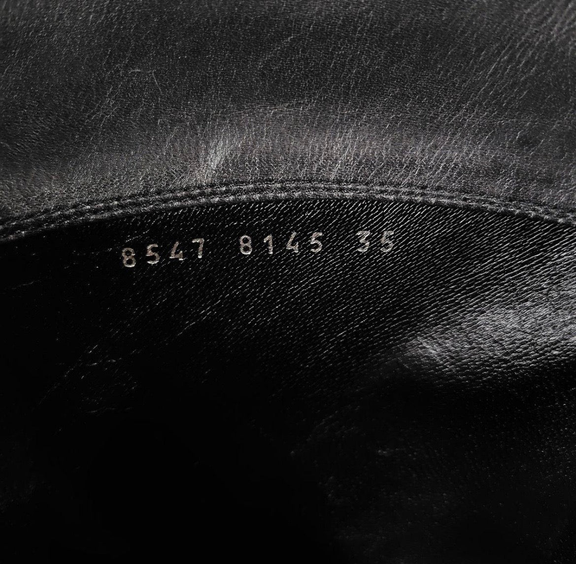 Color: black. Size indicated: 35 (approx. 22 cm). Maximum width: about 7.6 cm. Heel height: about 8.5 cm. Shaft height: about 26 cm. No accessories included.