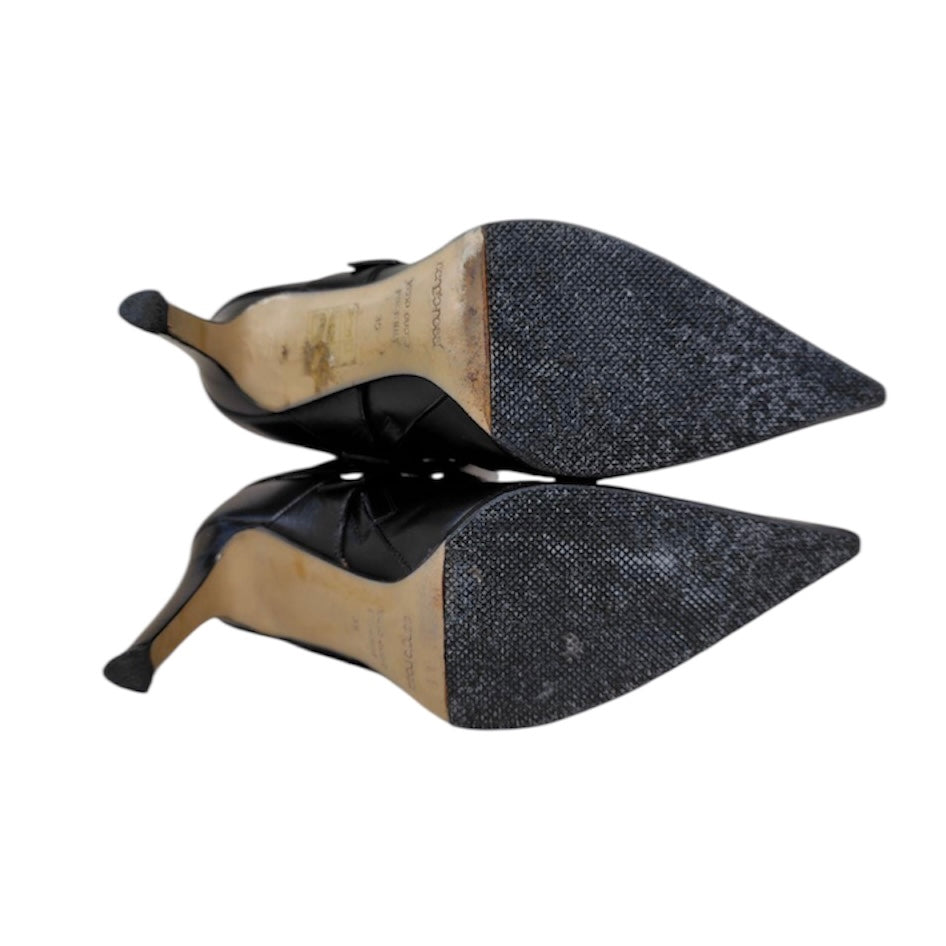 上質なブラックレザーを使用し、ポインテッドトゥとサイドジッパーで洗練されたシルエットに仕上げています。約8.5cmのヒールが女性らしい脚のラインを引き立て、クラシックで上品なスタイルを演出します。