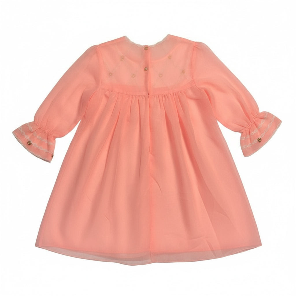 ピンク×オレンジ:レース装飾のシアーガウン*